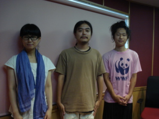 写真は、出演後のバックステージで。ケイタリングのキュウリの浅漬けが美味しいねぇとパシャリ。わたくしキュウリ大好物なのです。後藤くん、にんじんですか?藤原くん・・・じゃがいも・・・?不思議写真。(後藤くん、ナイスTシャツ)