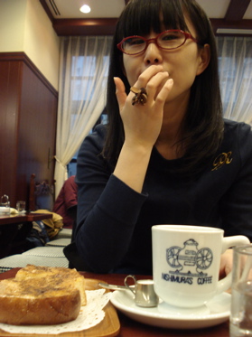 にしむら珈琲で、厚切りシナモントーストとブレンド珈琲を…。