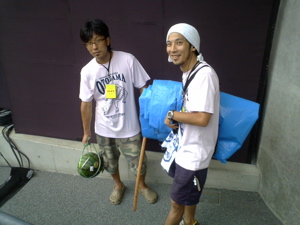そんで、写真はスイカ割りの用意をしてくれている音泉男湯&桶洗い。