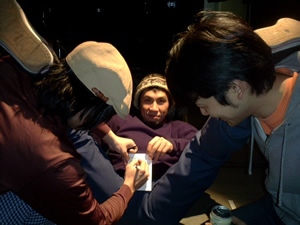 そういえば今週、京都ミューズでANATAKIKOUにライブ直後のステージで年賀状を書いてもらいました。そう、先週番組でプレゼントした年賀状です。すごい構図ですよね、この写真。カメラ向けながらハズカシかったです。