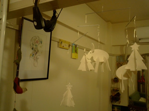 こんばんわ。みなさまご機嫌いかがでしょうか?とりあえずクリスマスの飾りをぶら下げてみました。その白いツリーや白いトナカイがエアコンの風に揺れるのを眺めて「あー年賀状どうしよう・・・」って思いながらうたたねしてしまう1週間でした。