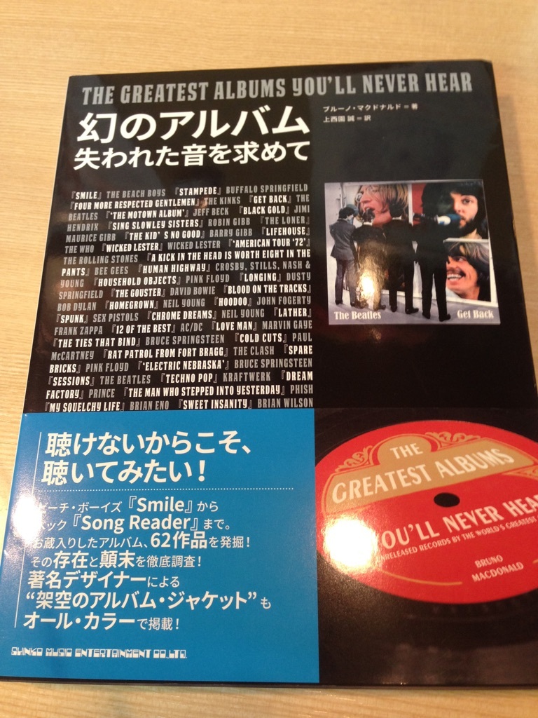 今夜のPRSENT☆書籍「幻のアルバム 失われた音を求めて」 2015-10-30 The Beach Boys「Smile」、The Beatlesの「Get Back」、Jimi Hendrix「Black Gold」・・・当時、雑誌などでタイトルや中身の一部が報じられながら、何かしらの理由でお蔵入りとなり、日の目を見なった“幻のアルバム”たち。60年代から2000年代にかけての“幻のアルバム”62作品を発掘し、それらの存在を可能な限り徹底的に調べ上げ、その真相を検証し、リリースの可能性までを探った音楽ファン必読の一冊がシンコーミュージックから発売されました 今夜は、その書籍「幻のアルバム 失われた音を求めて」を1名にプレゼントしますよ〜 これを読めばあなたも音楽マニアの仲間入り!? Tweet