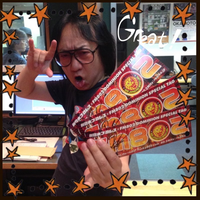 そして、オカダ選手の直筆サイン入り新日本プロレスとFM802コラボステッカーを3名にプレゼント
